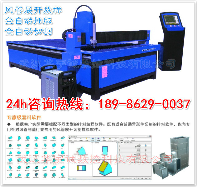 武漢華宇誠(chéng)數(shù)控科技有限公司經(jīng)過反復(fù)試驗(yàn),成功研制出了通風(fēng)管道專用數(shù)控等離子切割機(jī),配合專用的風(fēng)管切割軟件,自動(dòng)生成圖紙、導(dǎo)出加工程序。更加適應(yīng)風(fēng)管展開切割需求,功能更適應(yīng)風(fēng)管展開切割、操作更加便捷、成本進(jìn)一步降低,讓利于客戶。操作人員所需要做的就是在軟件中選擇所需要的風(fēng)管樣式,輸入所需要的尺寸,然后調(diào)出加工程序進(jìn)行切割就可以了。既方便快捷、又精確實(shí)用。